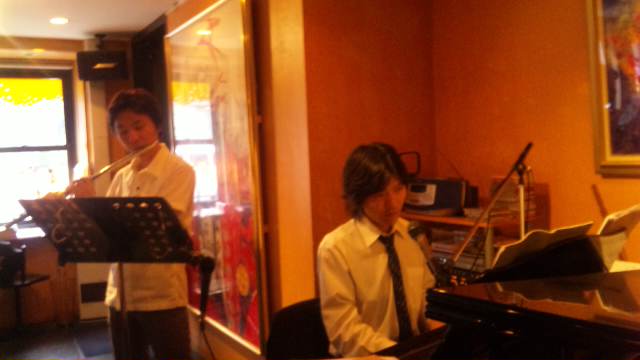 ゲストの境谷睦美さん(Vln)は本当に何でもこなせる人で、しかも表現力豊かです。ついプログラムも欲張って、少し長くなってしまいました。 新旧の映画音楽、ボサノバ、ジャズ、タンゴ、ビートルズナンバー… 頑張って削ったんですが、これ以上削りようがなかったです。 毎回、ゲストの方におんぶだっこ状態で、好き勝手やらせてもらって、それでいて意外に好評。こんなに嬉しいことはありません。 次回は10月18日(日)、ゲストはボーカルの村岡里実さん&酒井絵理さん。一挙に二人。これは贅沢です!! お二人の息の合ったハーモニーに注目です。